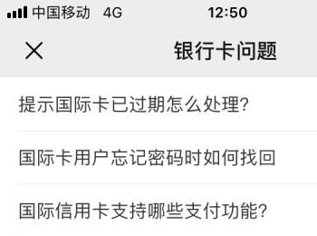 7. 第七步进入【银行卡问题】页面后,根据下图所示,找到并点击【绑卡提示邮箱地址填写错误怎么处理?】选项。