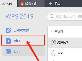 2.第二步,来到下图所示的WPS软件主页面后,点击页面左侧箭头所指的新建选项。