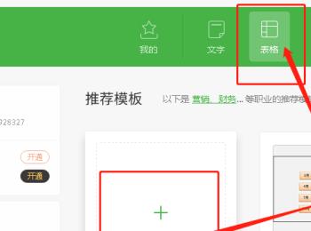 3.第三步,在下图所示的新建页面中,点击页面顶部的表格选项,接着点击箭头所指的创建新建空白表格选项。