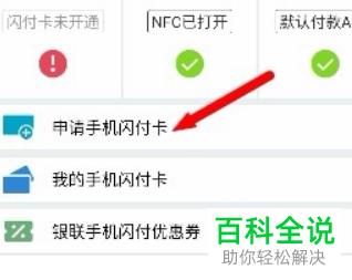 4. 第四步根据下图箭头所指,点击【申请手机闪付卡】选项。