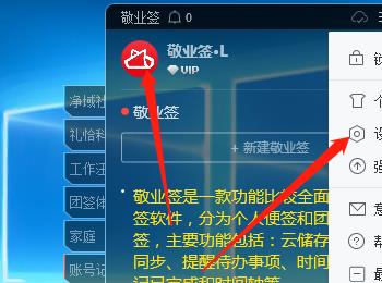 1. 首先打开电脑上的敬业签图标,进入主页面后,点击右上角的三横图标,在打开的菜单中,选择设置选项,或者点击左上角的头像进入设置。