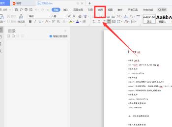 1. 首先第一步用WPS打开电脑中需要校对的文档,根据下图箭头所指,点击【审阅】选项。
