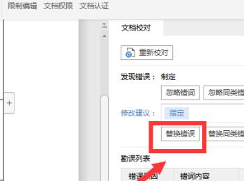 6. 第六步按照实际情况选择是否修改。如果需要修改的话,根据下图箭头所指,点击【替换错误】选项。
