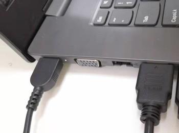 1. 首先我们需要使用HDMI线将笔记本与液晶显示屏进行连接