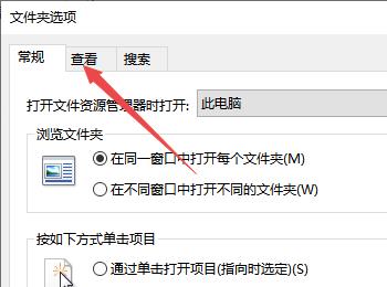 4. 第四步打开【文件夹选项】窗口后,根据下图箭头所指,点击【查看】。
