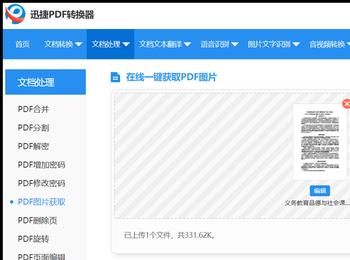 第一步 在这里运用到一个网页上的在线工具,我们先在网页上搜索工具名称,接着找到结果后打开即可,在首页的功能中选择【文档处理】——【PDF图片获取】。