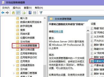 3. 在【文件资源管理器】上双击打开,在右侧找到【不要将删除的文件移到回收站】的选项。