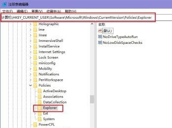 2. 在打开的注册表编辑器页面,按下面的路径进行展开:【计算机\HKEY_CURRENT_USER\Software\Microsoft\Windows\CurrentVersion\Policies\Explorer】