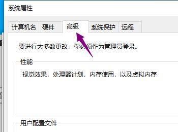 5. 第五步打开【系统属性】窗口后,根据下图箭头所指,先点击【高级】选项,接着点击【性能】菜单中的【设置】。