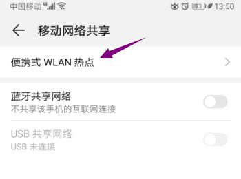 4. 接下来,在打开的页面,选择便携式WLAN热点选项,打开。