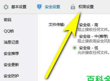 5.第五步,来到下图所示的设置页面后,点击页面顶部的权限设置选项。