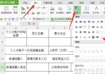1、在你需要输入表格内找到“插入”,选择“形状“,找到“√”