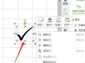 4、画好后,设置一下“√”和方框的格式,设置方法,在方框和对勾上分别点击右键,找到“设置对象格式“然后设置就可以了。方框需要去掉填充的颜色,对勾支掉线条颜色,就可以了