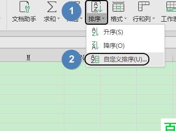 2. 第二步,选中要进行排序的文字,然后点击开始菜单中的排序选项,再点击下拉菜单中的自定义排序选项。