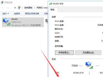 2. 第二步打开【WLAN】窗口后,根据下图箭头所指,点击【更改适配器选项】。