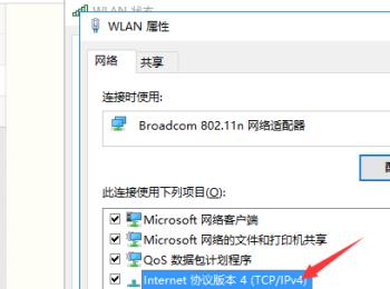 4. 第四步打开【WLAN属性】窗口后,根据下图箭头所指,找到并双击【Internet协议版本4】选项。