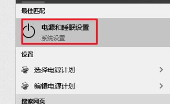 4.第四步,我们可以看到如下图所示的搜索结果页面,点击红框中的电源和睡眠设置选项。