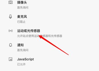 5. 在右侧打开的页面,找到运动或光传感器选项,点击。