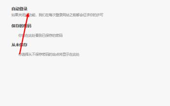 6. 最后在【密码】页面中,根据下图箭头所指,将【自动登录】选项后的圆圈向右滑动,即可启用该功能。