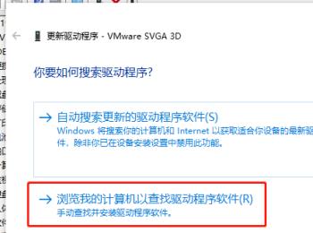 3. 在打开的窗口中,可以看到两个选项,建议选择下方的浏览我的计算机以查找驱动程序软件的选项,进行手动查找并安装,不过需要我们事先准备好驱动,当然也可以直接使用驱动安装显卡驱动,