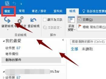 1、输入帐号密码,登录到outlook主界面中,在工具栏找到‘档案’菜单按钮。
