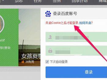有一个写的朋友,突然电脑出了问题,发现登录不上了,输入用户名和密码后,在登录窗口出现一行红色提示“开启Cookie之后才能登录”,重启好几次浏览器,都是这样,不知如何解决,找到了我,让我帮她看看。