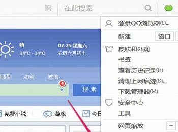我这个朋友出现问题时,用的是QQ浏览器,后来用IE试着登录,也登录不了,那就先查查QQ浏览器吧。 在浏览器的右上角,在一个“三”的主菜单图标,点击一下。