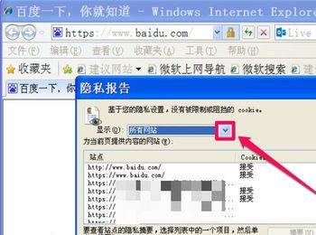 进入隐私报告窗口,在“显示”后面的值是“所有网站”,打开下拉框,选择“受限网站”看一看,如果有,就取消,但也没有发现受限的网站,只能再点击“设置”按钮。