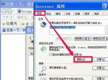 但我那位朋友重启浏览器后,却还是登录不上,看来还是有问题,再清理一下网页缓存试试,因为很多时候,问题就出在网页缓存上。 在Internet选项的“常规”选项卡中,点击“删除”按钮。