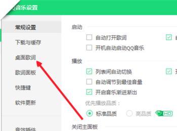 5、然后在左侧这里有个”桌面歌词“同样我们点击它。