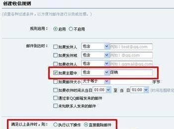 邮件过滤,是对抗垃圾邮件、欺诈邮件的一项非常有效的技术,对于符合过滤条件的邮件进行过滤处理,就如同杀毒软件对病毒的查杀一样。QQ邮箱的收信规则就相当于邮件过滤器,当邮件到达时,你可以根据自己的要求选择相应的条件,并在所选条件的对话框内填入相应的关键字、关键词;这样当条件满足时,QQ邮箱就会根据设置对这些垃圾邮件进行处理。
