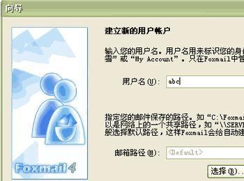 2、点击下一步弹出以下窗口,在用户名处填入您喜欢的名字,如:abc;
