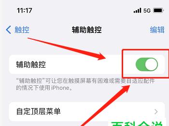 1. 首先第一步打开【设置】窗口,先进入【辅助功能】页面,接着根据下图箭头所指,将【辅助触控】选项后的圆圈向右滑动,启用该功能。