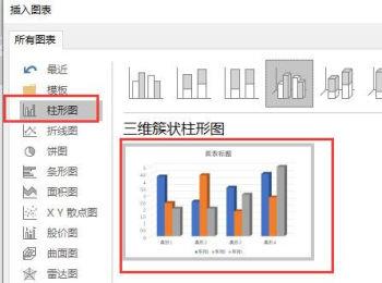 3. 第三步在弹出的窗口中,按照需求选择想要插入的图表。根据下图所示,小编以【三维簇状柱形图】为例。