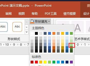 6. 第六步在弹出的菜单栏中,找到并点击想要设置的填充颜色。根据下图所示,小编以浅绿色为例。