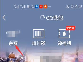 3.第三步,在下图所示的QQ钱包页面中,点击左上角箭头所指的余额选项。