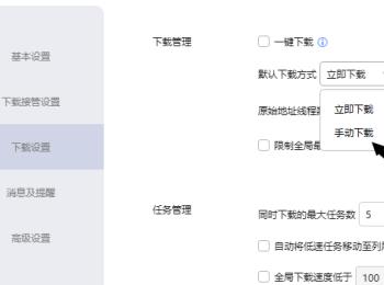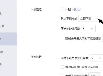 5. 在右侧打开的下载管理栏,就可以看到默认下载方式的选项了,点击右侧的下拉符号。