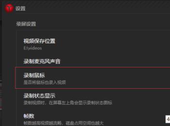 6.第六步,在下图所示的页面中,打开录屏设置中录制鼠标右边的开关。