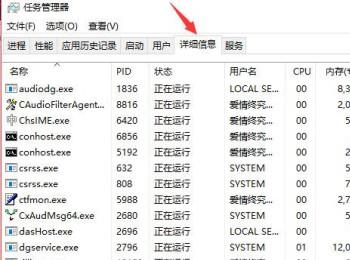 3. 第二步,调出任务管理器窗口后,点击上方的详细信息选项,然后在详细信息页面下,找到名为explorer.exe的进程。