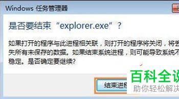 5.第四步,此时桌面上将会弹出一个是否结束进程的对话框,点击对话框中的结束进程按钮。