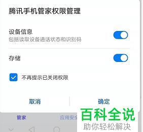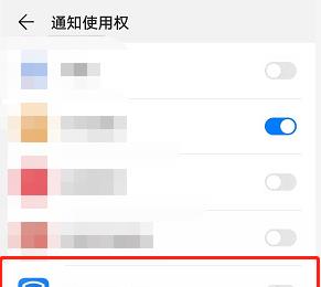 9. 第九步打开【通知使用权】窗口后,根据下图箭头所指,将【腾讯手机管家】选项后的圆圈向右滑动,启用该权限。