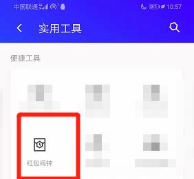 4. 第四步进入【实用工具】页面后,根据下图所示,找到并点击【红包闹钟】选项。