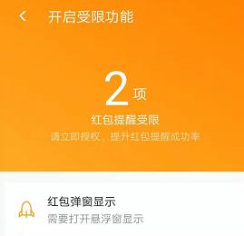 8. 第八步如果弹出红包闹钟使用受限提示,根据下图箭头所指,点击【马上设置】选项。