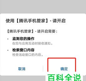 14. 第十四步跳转到【无障碍】页面后,根据下图箭头所指,点击【腾讯手机管家】选项,接着在弹出的窗口中点击【确定】。