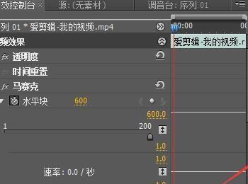再找到特效控制台,找到马赛克的水平块,将滑块拉动调水平方向的马赛克。