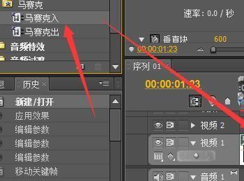 将马赛克的效果按住不放拉动到视频轨道上放手。