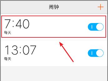 2. 第二步进入【闹钟】页面后,根据下图箭头所指,点击需要设置的闹钟。