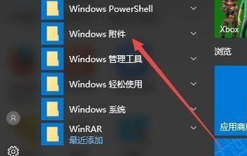 在Windows10桌面,点击开始菜单,然后点击菜单中的Windows附件菜单项