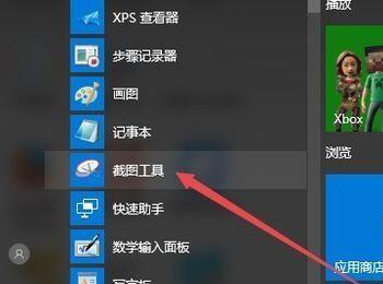 以后直接点击开始按钮,在弹出的开始菜单中就可以看到截图工具了。