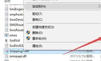 这时会打开截图工具的文件夹,右键点击截图工具文件,然后依次点击发送到桌面快捷方式菜单项